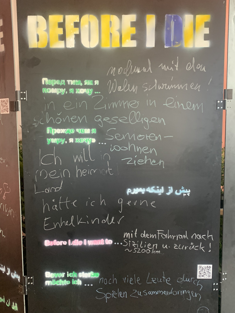 Gerne macht sich das "Before I Die"-Projekt nun auch an andere Orte und zu Dialoginitiativen auf den Weg! Fragen Sei gerne an bei BRÜCKE-KÖPRÜ!